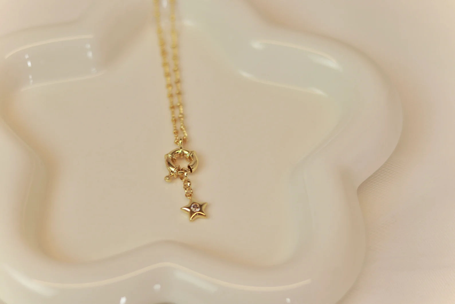This 16" gold-plated satellite chain has a shiny star hanging daintily from a strong clasp, crafted from durable gold-plated stainless steel. Its adjustable length ensures a perfect fit, while the tarnish-resistant finish makes it ideal for everyday wear. This piece is especially great for stacking and elevating any look.